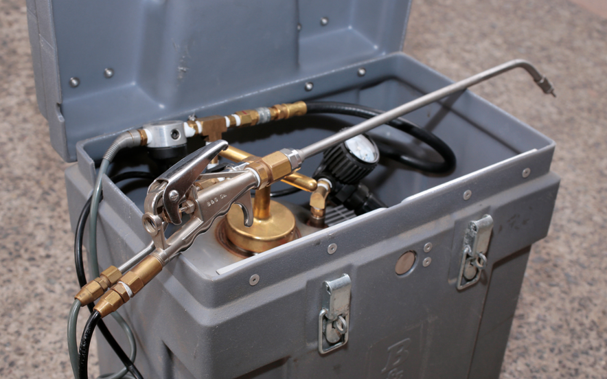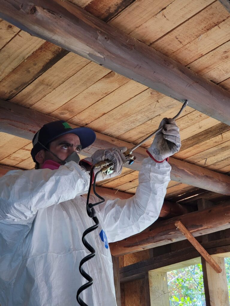 Equipo aplicador de pesticida o termicida en forma de espuma o ultra bajo volumen, hacia el interior de las cavidades producidas por insectos Xilófagos dentro de la madera, para así llegar a lugares tales como grietas, caminos interiores, orificios.
